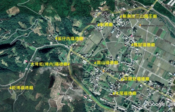 「圓山邊」聚落位於林美村第14鄰,因該區有一沖積形成的圓形土丘而得名。聚落內有一圓山福德廟,創建年代已不可考。