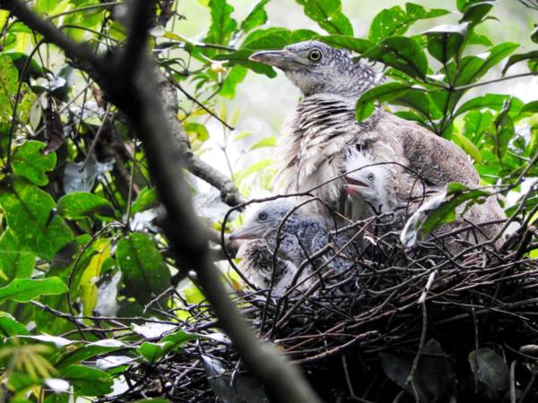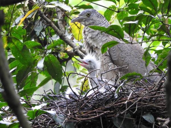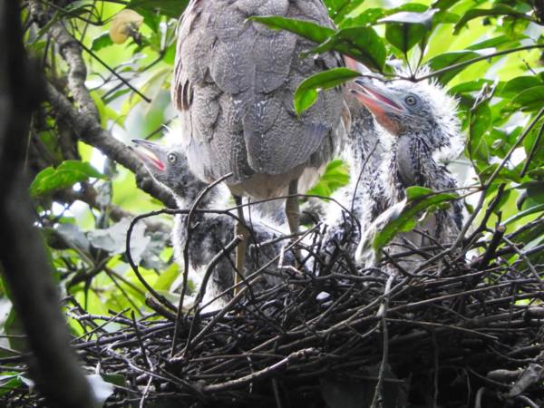 2017.05.20 黑冠麻鷺雛鳥破殼後第13天,母鳥育雛