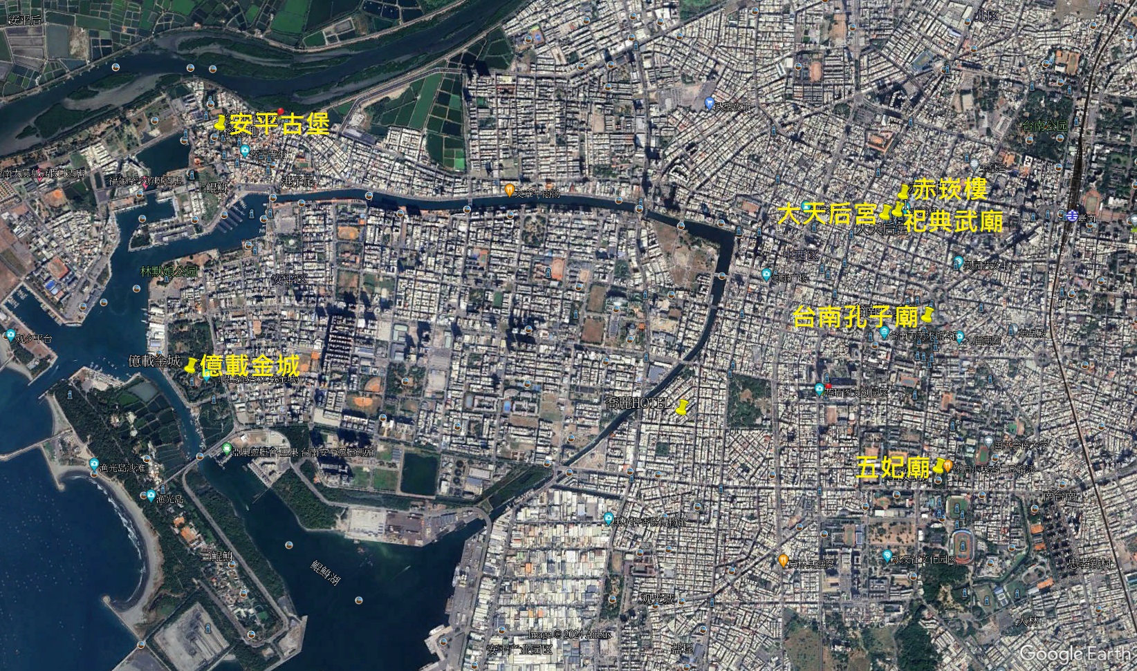 台南市7處一級古蹟位置圖