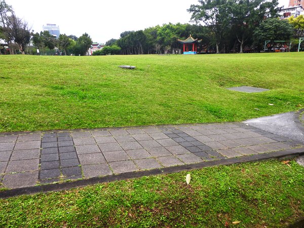 南港公園草坪旁人行道,有人稱是龍穴所在