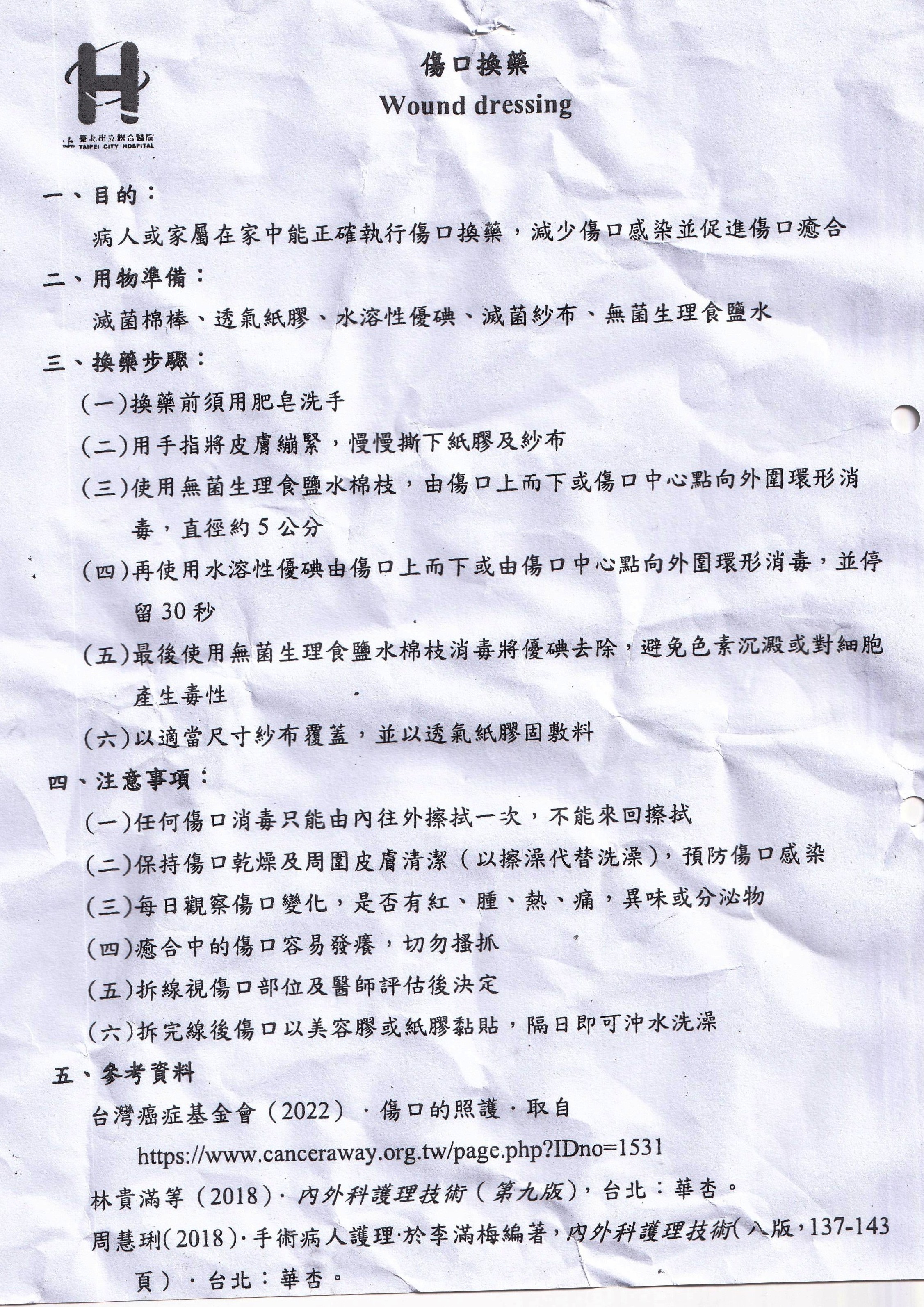 傷口換藥須知 (放大版)