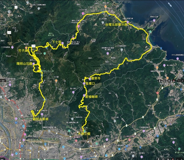士林、北投、金山、萬里、內湖車行路線圖
