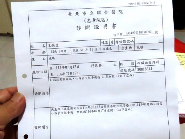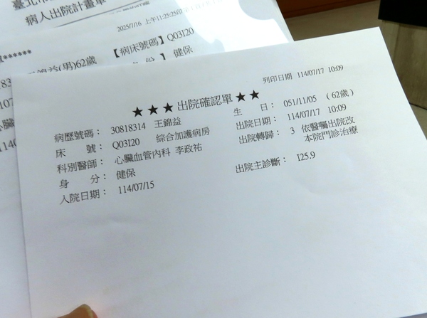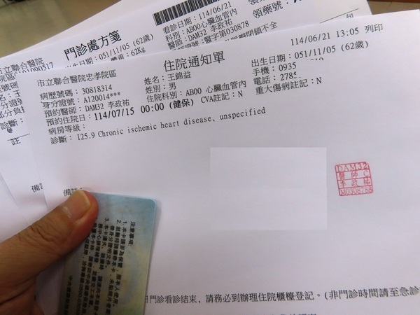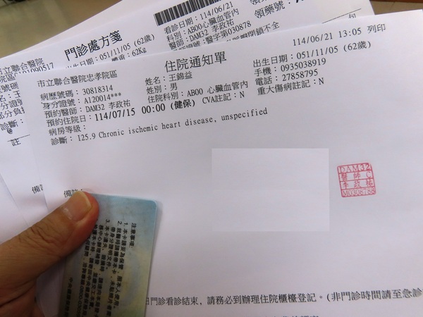 2025.06.21 忠孝醫院心臟內科李政祐醫師安排我住院做心導管檢查