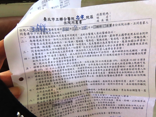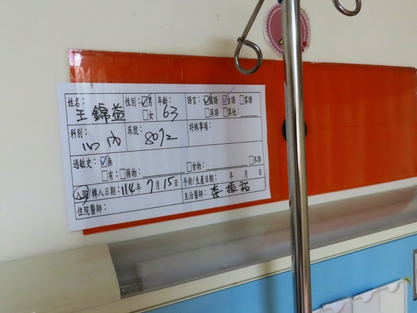 13:58 八樓八東病房報到,入住807病房 (4人房)