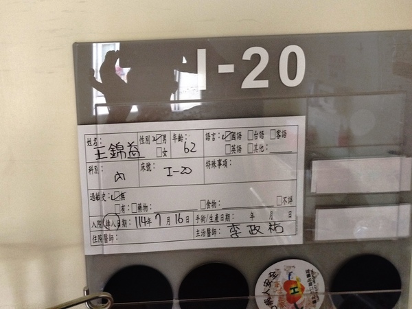 10:05 入住三樓加護病房I-20病房,開始漫長的平躺