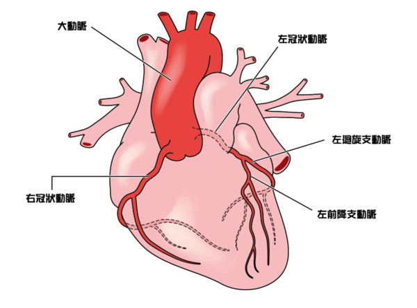 - 右冠狀動脈 (RCA):供應右心及左心下方肌肉。