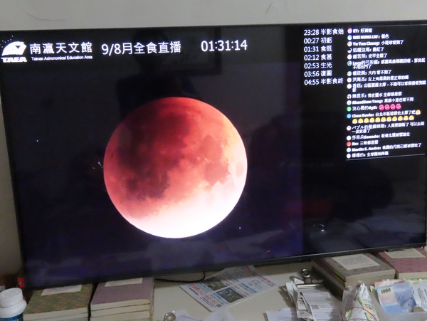| 食甚(全食極大) | Greatest Eclipse | 月球最深陷本影,血紅最明顯 | 9/8 02:11 |