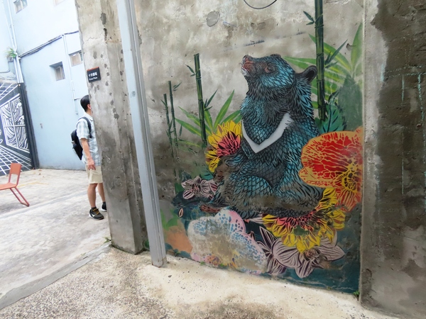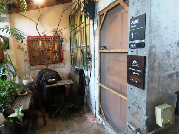 半樓廣場從設計感與氛圍上來講,有一種「斑駁」與「舊時台北」的味道。破舊的牆面、斑駁的磁磚或磚牆、鐵皮屋頂、小窗或窗框殘留的老樣子,都讓人感受到時間的厚度。