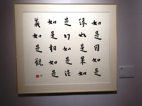 一心師曾說,《八大人覺經》云:「多欲為苦,生死疲勞,從貪慾起;少欲無為,身心自在。」此正是弘一大師在戒律中得以修持的根本。而「如是之間」的展題,即緣起於去歲佛誕始七七禪修斷食的過程中,曾有境緣示現八個「如是」(如是因、緣、果、幻、法、相、義、觀),令其在斷食中感悟到了生脫死的法喜,亦為作品賦予深邃的精神意蘊。