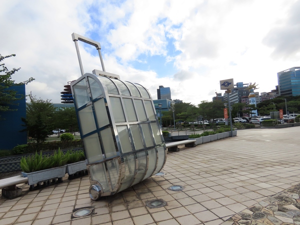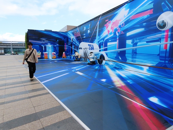 這件作品以旅行箱為主題,非常貼合松山機場作為都會交通樞紐的形象。