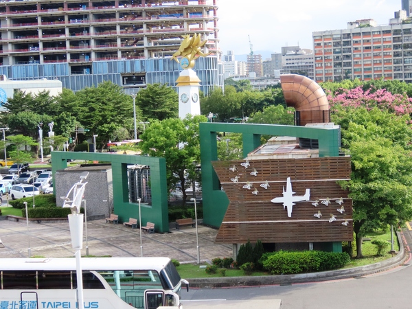這件作品就設置在松山機場捷運站 3 號出入口的廣場上,是往來機場和敦化北路附近民眾一眼就能看到的顯著地標。