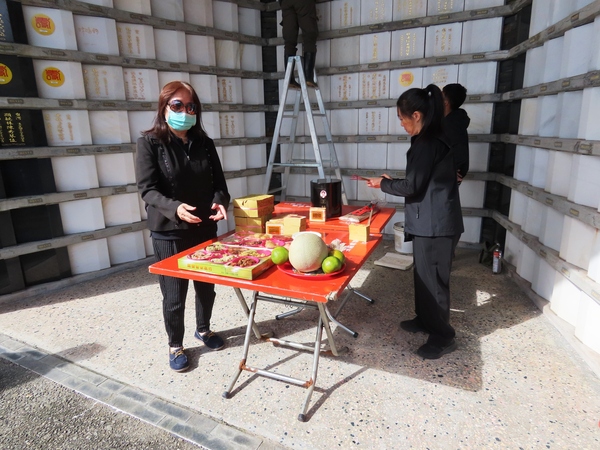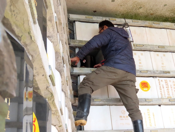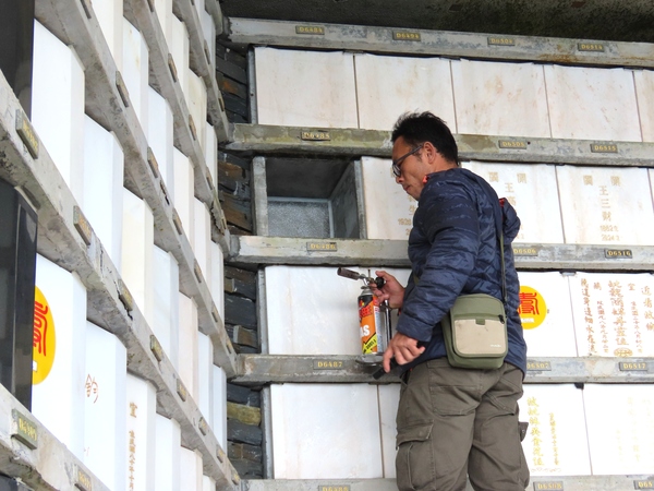 09:57 殯葬處工作人員清理消毒老媽的塔位