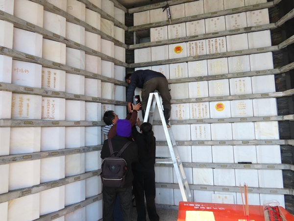 10:01 四哥捧著老媽骨灰甕由「福園」抵「櫻花陵園」納骨廊
