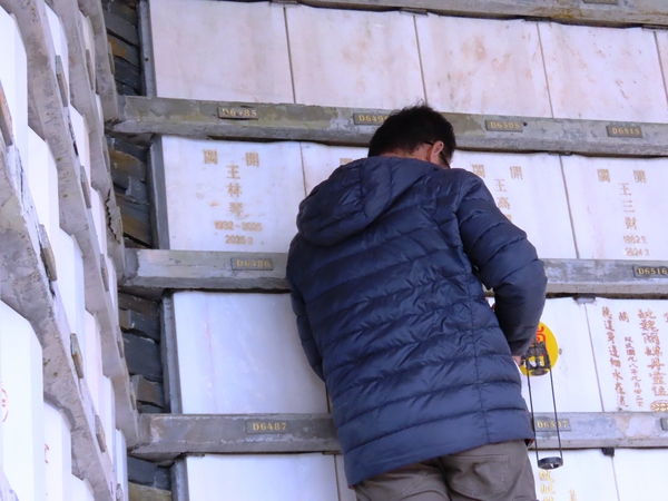 10:01 四哥捧著老媽骨灰甕抵「櫻花陵園」納骨廊