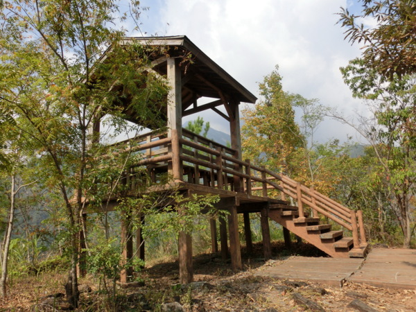 松風山步道,位於惠蓀林場研習中心後方,可由柑仔店進入,出口接涉水步道,高點松風山,海拔835公尺,單程2.5公里,之字型山徑緩步向上,沿途松樹夾道,落葉毬果鋪地,鬆軟有彈性,一路窸窸窣窣,好不熱鬧。經過一段碎石坡,上至稜線涼亭,視野豁然開朗,遠眺尾敏山、眉原山,山頂第二涼亭的樹林旁,有山字森林三角點,及交通部中央氣象局地殼形變觀測站。觀景台可眺望險峻的凌雲斷崖,俯瞰北港溪蜿蜒於下,夏日松風沁涼,秋季楓紅片片,行走其中,享受不同季節的美景,令人心曠神怡。
