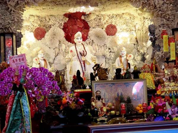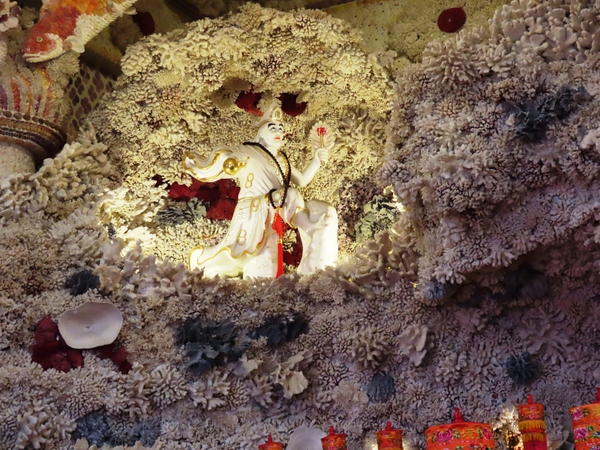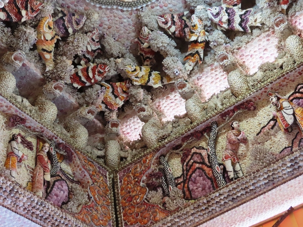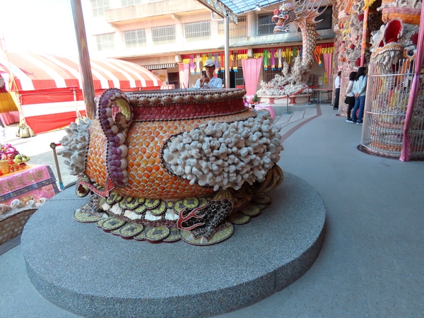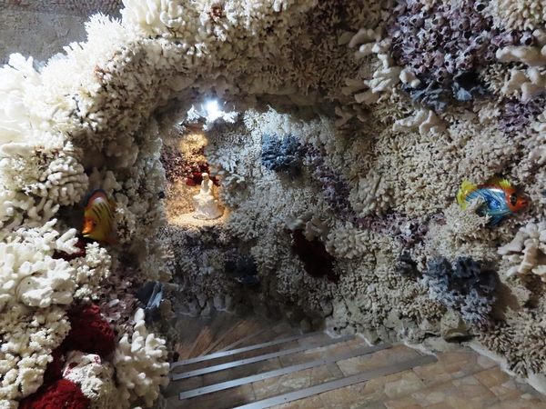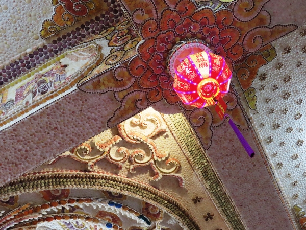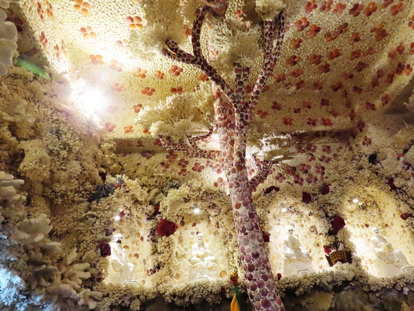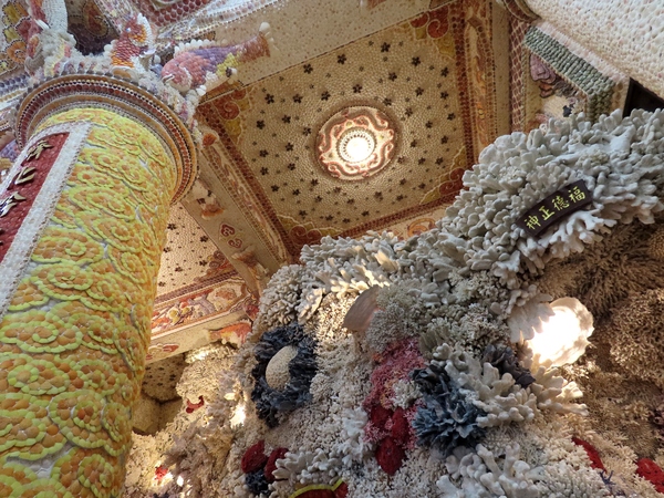 👉 整座廟內外幾乎都用「珊瑚+貝殼」打造