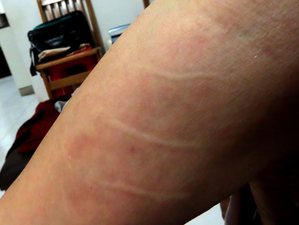 是否搔癢? 如果這些印痕出現時伴隨強烈的搔癢感,那「皮膚劃紋症」的可能性較大。