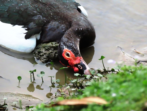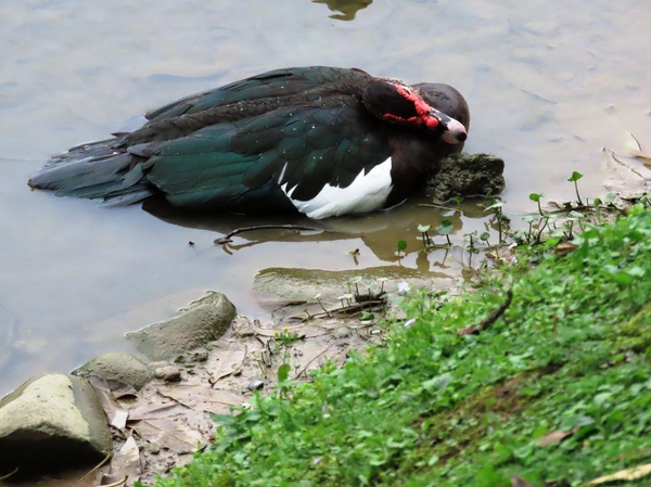 南港公園調洪池邊的紅面鴨 (疣鼻棲鴨) 奄奄一息