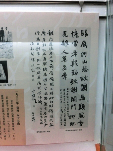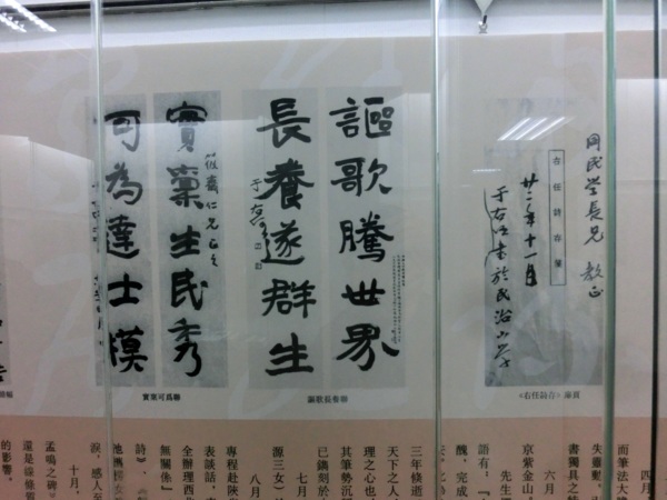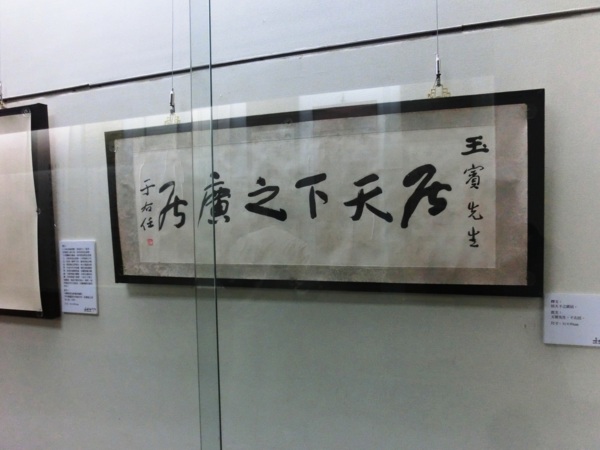當「2014漢字文化推廣系列活動」進行之時,正值右老辭世50周年紀念,承辦單位中華民國書學會將右老紀念活動列為重要的項目。舉辦一代草聖‧于右任大展,展出右老從大陸到臺灣代表各時期書法作品、日記、手札使用過的毛筆、長衫等文物。本次展覽共計近200幅,從早期的魏碑、行書及至草書作品,均為以往所難得見到的精品,除了書法之作品外,還特別商請日本的于右任研究者所珍藏的日記、雜記等文物提供展出,其中以遺歌鋼筆作品最受矚目,這首「葬我於高山之上兮........」的名作,是大家耳熟能詳,將在這次的大展首次露面。展覽將從103年11月6日至12月3日,在國立國父紀念館中山國家畫廊展出。