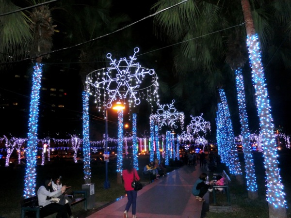 2014新北市歡樂耶誕城15日點燈開城,無論白天和晚上的耶誕裝置也成為民眾拍照上傳打卡的受歡迎景點之一。新北歡樂耶誕城今年首度加碼至51天系列活動,是萬眾矚目的指標活動,除了全台最高耶誕樹主燈以及年年推陳出新的主燈秀,全新設計的360度實境模擬動畫,打造出全台首見劇場式的夢幻情境,活動期間每日傍晚18時到22時整點於新北市民廣場定時啟動,為新板特區施展北國極光魔法,歡樂驚奇的絢麗場景不容錯過。