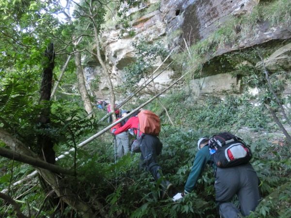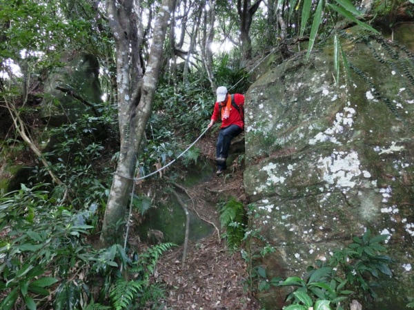 14:36 拉繩拉繩攀樹下垂降(H750m),約85度,高約20公尺