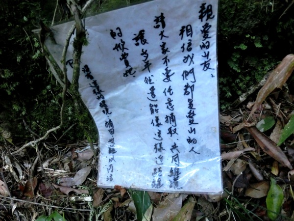 12:48 岩壁上有張請山友勿採摘艷紅鹿子百合的公告