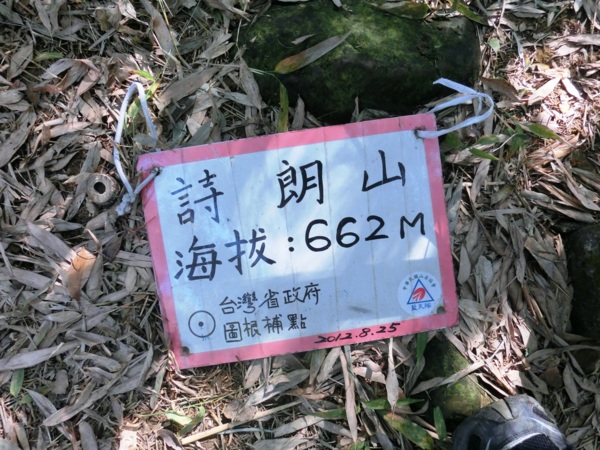 13:26 詩朗山山頂(H665m),又稱西崙山,竹林中有台灣省政府圖根補點基石,無視野