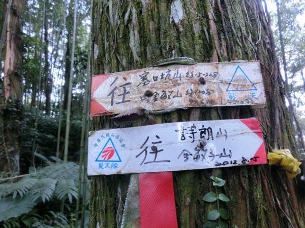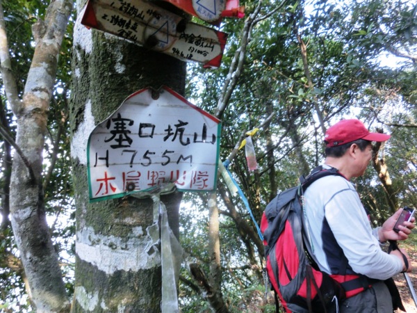 14:23 經過幾個陡上再陡下再陡上後抵塞口坑山山頂(H755m),山頂有標示牌,但無基石