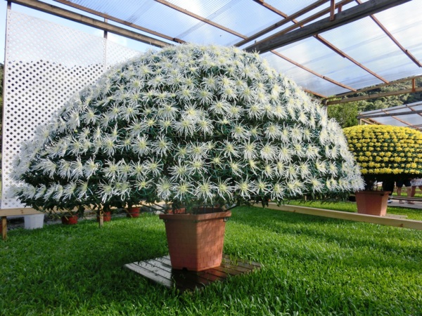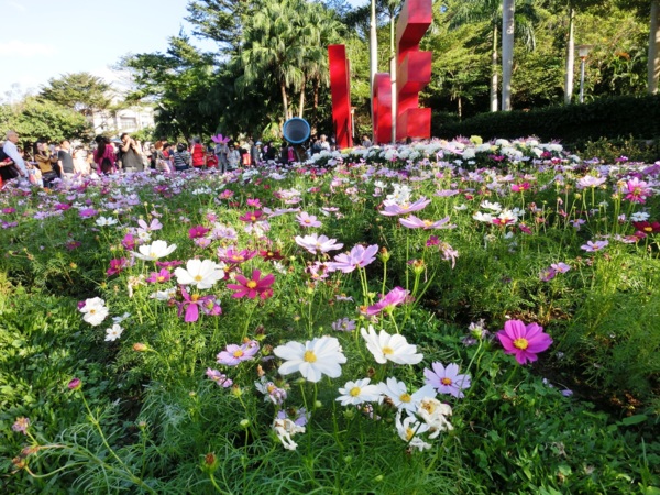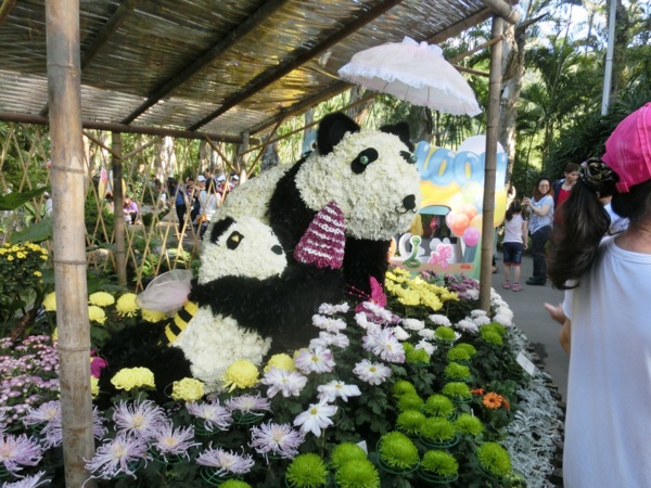 除了戶外展區外,今年的三個展覽館展示也很精彩,包括以紅、黃、綠染色菊呈現愛的旅途紅綠燈,搭配胡復金老師8幅菊花創作畫作的「鮮菊之愛」、以象徵愛情的牡丹鸚鵡穿梭在梅蘭竹菊氛圍的「愛情鳥」及5大花博名師尬盆花及切花花藝的「愛無菊限」,另外還有以菊花切花形塑而成的貓熊、霜淇淋,更讓各展場間串連裝置展現「愛的小確幸」,成為吸睛焦點。