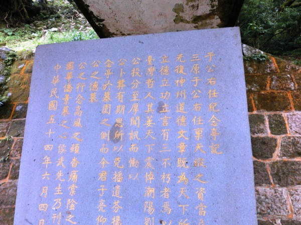 于右任於1964年在其監察院院長任內病逝,總統蔣介石安排於陽明山區下葬。墓園形制採近代大型墓園規格,內有蔣介石、嚴家淦聯名褒揚令、孫科題字的「仰止亭」,以及石匾、石獅、石坊、牌樓等。其內的碑刻書法皆為上乘之作。因管理單位權責不清楚,時隔多年少有維護,多有荒廢。2012年新北市政府邀專家學者會勘,認定於右任成就卓著、墓園形制恢弘,決議列為市定古蹟。