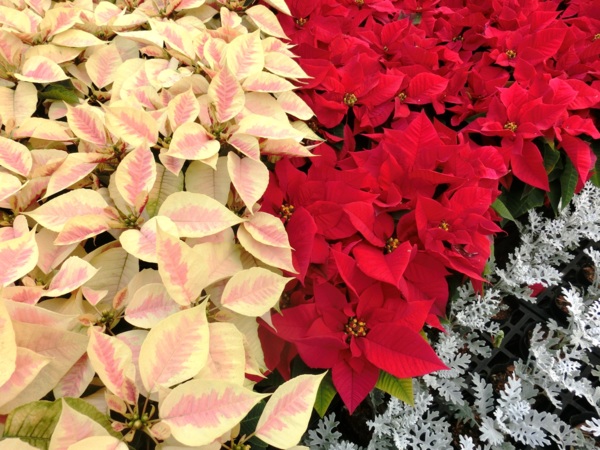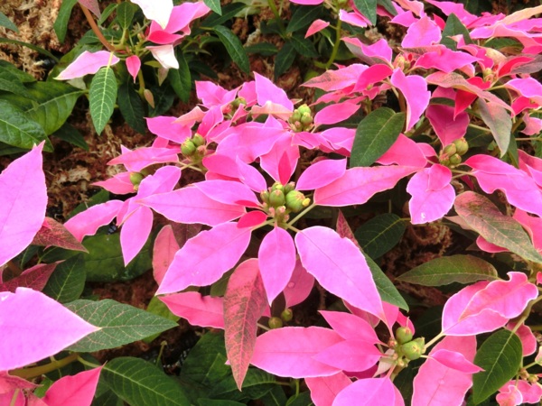 還有一直以來相當受歡迎的桃紅色系品種「桃莉」,也引進近幾年才育出的品種「四季桃喜」,以及與聖誕紅不同種的「聖誕初雪」,它的細小苞片像雪花,更增添一股濃濃的耶誕味。