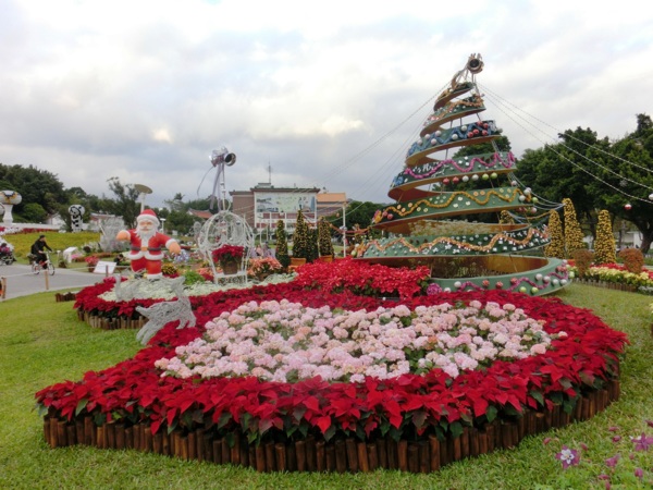 叮叮噹、叮叮噹,聖誕樹掛上裝飾、再用聖誕紅加點色彩,到處充滿濃濃的聖誕節氣氛,花博公園萬花節最後一棒「台北花卉展」也將展開為期一個月的聖誕「趴踢」。