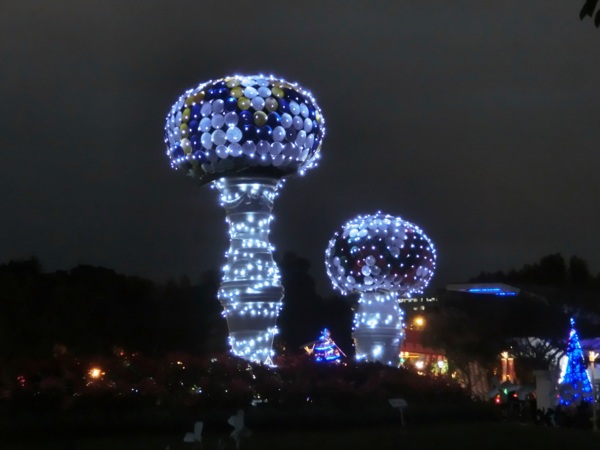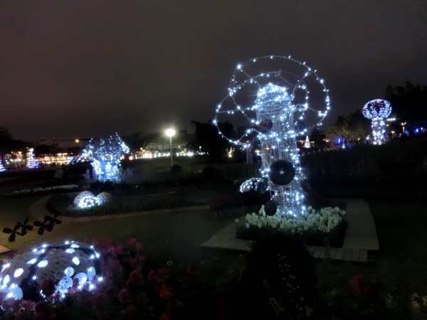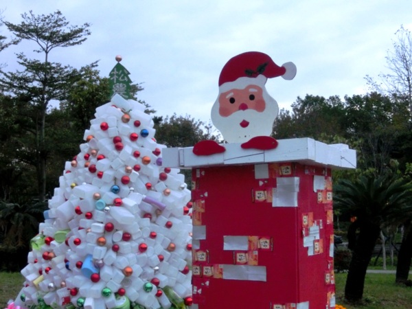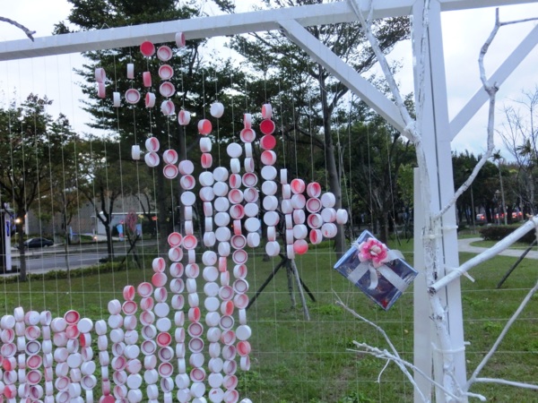 此外,公園處自行設計了各種大小、材質各異的創意造型聖誕樹,透過鏡面反射打造奇幻森林的感覺,藉由布料的延展性創造出彩色的巧克力噴泉,以及甜蜜繽紛的糖果造型聖誕樹,入夜後搭配燈光設計,展現不同風貌。
