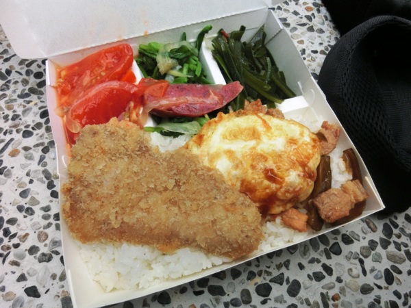 11:48 為省時間,在竹形雕塑旁開始狼吞便當