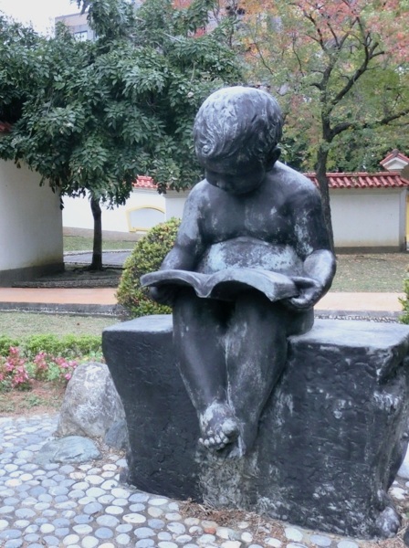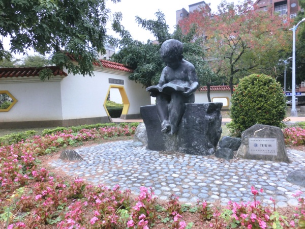 14:01 抵中正路志成公園門口,門前有讀書樂石雕
