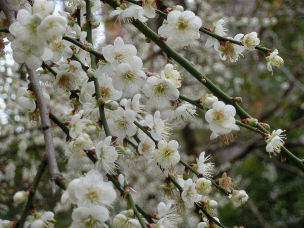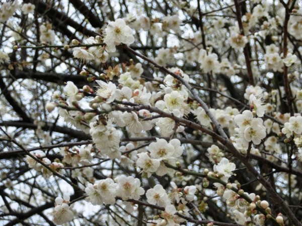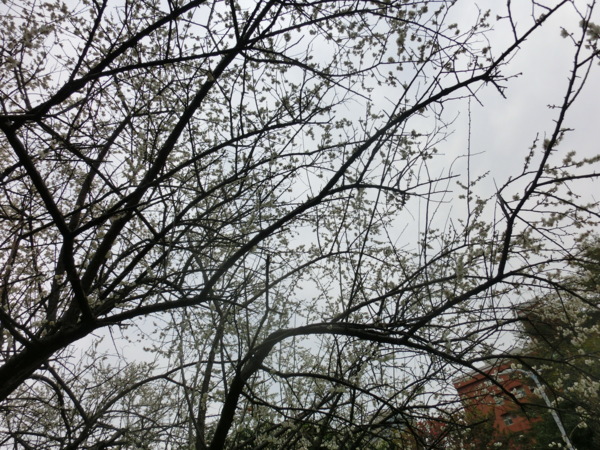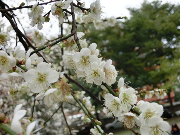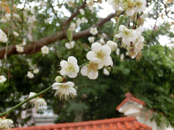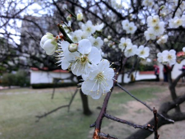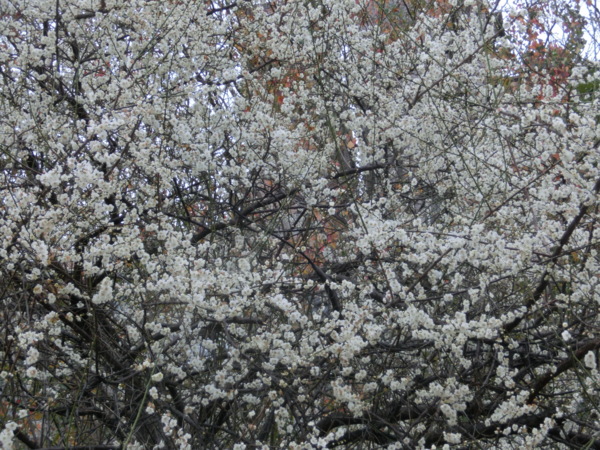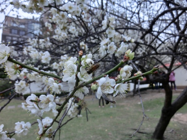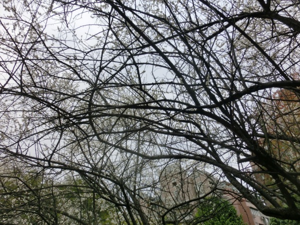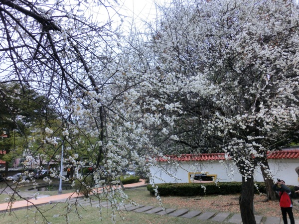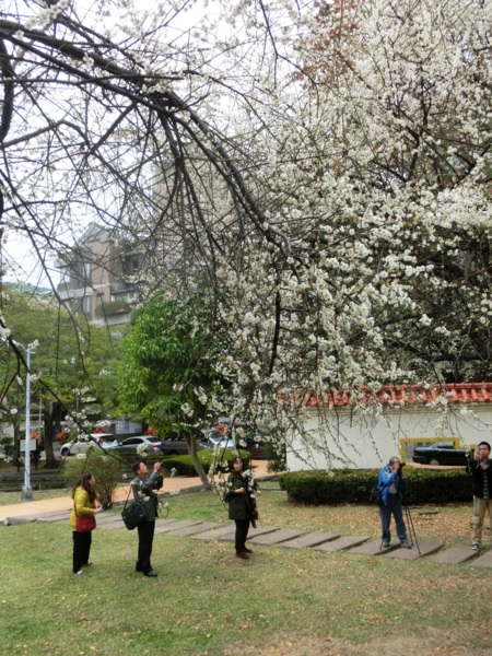 14:02 志成公園內見白梅五六株在風中盛開,落花如雪,暗香浮動,讓我留連許久