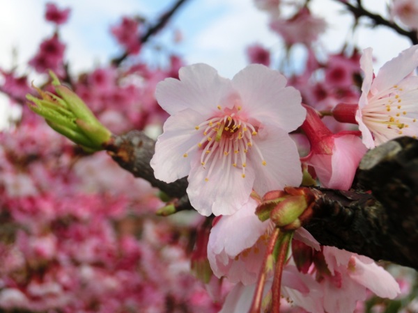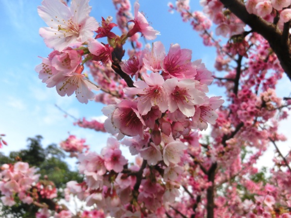 寒櫻初開時花朵呈現淡淡粉白,隨後轉為粉紅色,後期將轉為深紅,且一個花苞內蘊藏有3至4朵花,每個花苞間隔小,一同盛開時整個枝條綴滿柔美而嬌媚的粉嫩花朵。除了樂活公園可欣賞寒櫻外,公園往內溝溪中上游處,更在當地志工參與之下分區段種植八重櫻、昭和櫻、吉野櫻、松月櫻、天城吉野櫻等品種,花期宛如接力般逐段綻放,賞櫻期將從1月持續至4月,營造出春季浪漫的賞櫻美景。