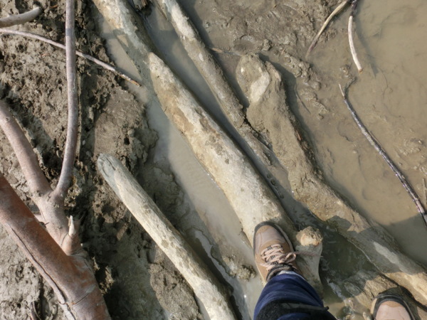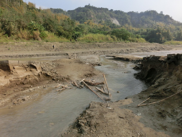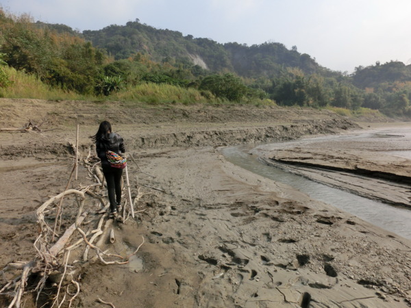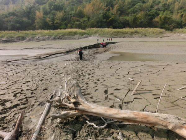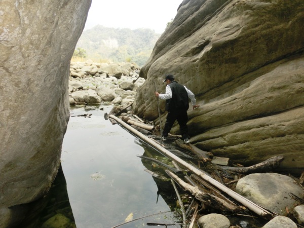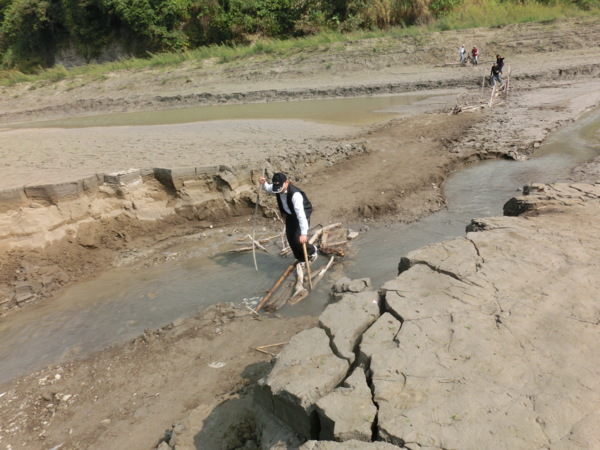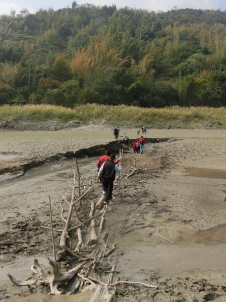 13:52 踩枯枝乾木鋪成的便橋過溪