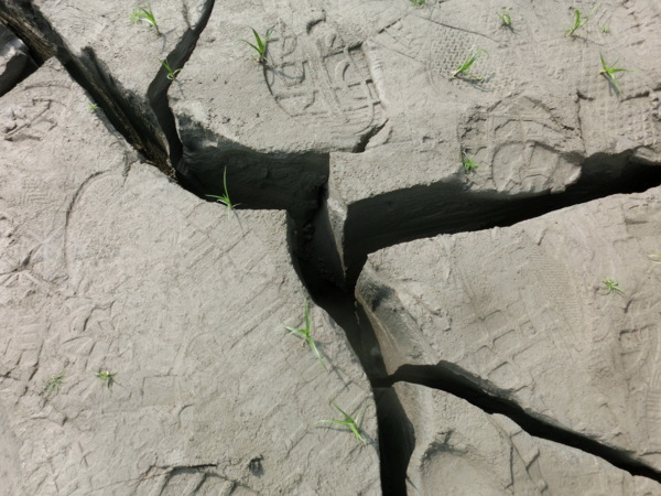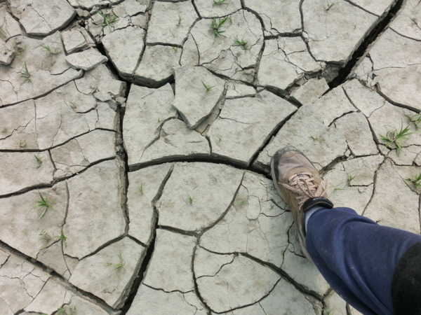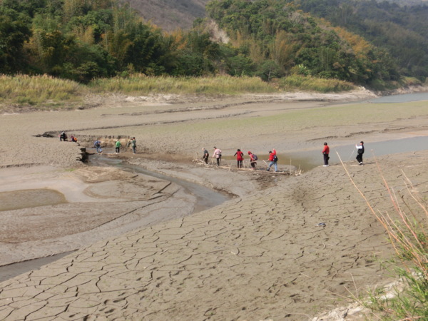 南化大地谷到底有多神秘,在林管處人員的帶路下,得先穿過乾涸的南化水庫底部,用竹籐臨時架起的小橋勉強通行,接著還要走上一小段路,沿路低頭望,全都是遊客行經留下的腳印,看似一般的洞口,才往前走個幾步,壯觀峽谷映入眼簾。