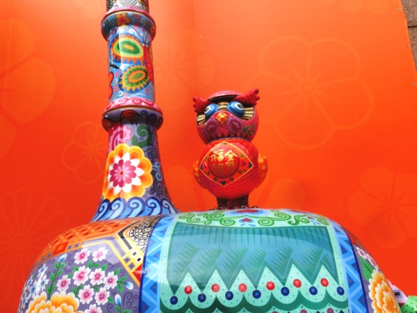 今年的信義區,充滿文創味。百貨公司與辦公大樓林立的信義區以往給人濃厚的商業氣息,但今年民眾可能不經意就會與《山羊》、《長景祿》、《大頭雞》相遇,這是擅長以動物為主題、融和生活符號與圖騰的台灣當代藝術家洪易的作品。