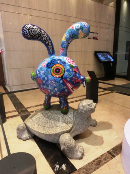 此次展覽中體積最大、長近5公尺的《餘龍》則帶有台灣多元元素,洪易希望揮別去年的天災人禍,能在今年傳遞更多正能量。《愛心蝸牛》的蝸牛背著愛心形狀的殼,希望提醒來往旅客或上班族試著放慢腳步,才能感受生活中的小細節,必定能獲得心中一份小確幸,加上情人節將近,也是十分應景的裝置藝術。