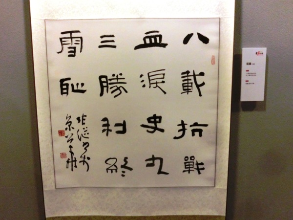 為書寫抗戰,書法家緬懷抗戰時期中國內地與滇緬地區的抗戰故事,鋪陳戴安瀾、王銘章、張自忠、楊靖宇等名將事迹。台灣前「考試院」院長許水德說,日本侵華戰爭給中華民族帶來巨大損失,希望以展覽喚起中華民族共同的歷史記憶,促進兩岸民眾更加團結。中國宋慶齡基金會副主席齊鳴秋表示,希望民眾牢記慘痛經歷,共同致力於中華民族偉大復興。