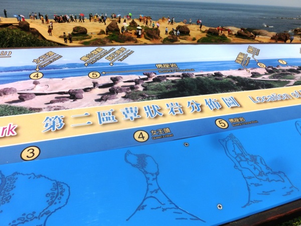 女王頭是野柳地質公園的地標,本身為蕈狀岩,民國51~52年(西元1962~1963年)間因頂部結核上的節理斷裂,讓岩石形狀改變,遠觀時外形雍容大方,頸部修長、臉部線條幽美,貌似英國伊莉莎白女王頭像,因而得名。經過數十多年自然風化影響,女王頭脖子越來越細,目前已委託學術研究單位進行補強計畫,以確保女王頭地標長久存在。