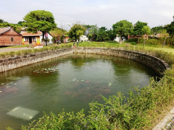 月眉池造型正如其名,為中國風水聚寶收納的最佳型制,具有防禦、防火、供水、降溫等功能,並替古厝環境生色不少。月眉池前為平坦的藏風聚氣「名堂」。