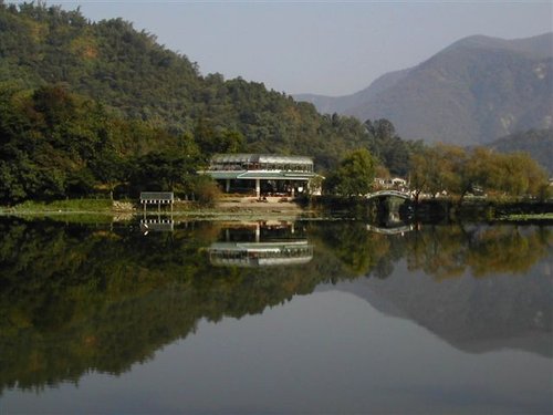 鯉魚潭四周有幾處農舍傍水而建,白色的農舍相映於碧潭水中,襯以青山綠景,彷彿一幅桃源景致;有時水鳥翱翔,魚躍潭面,亦增添幾分空靈閒雅的氣息。