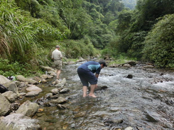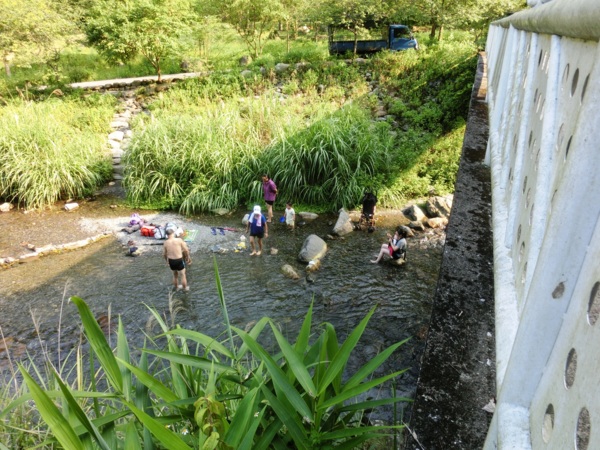 15:04 九寮溪邊脫鞋泡水,剛才走斗嫩產業道路的炙熱暑氣頓消