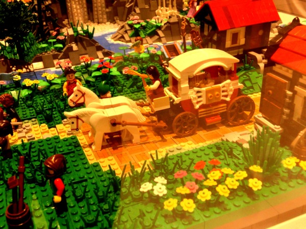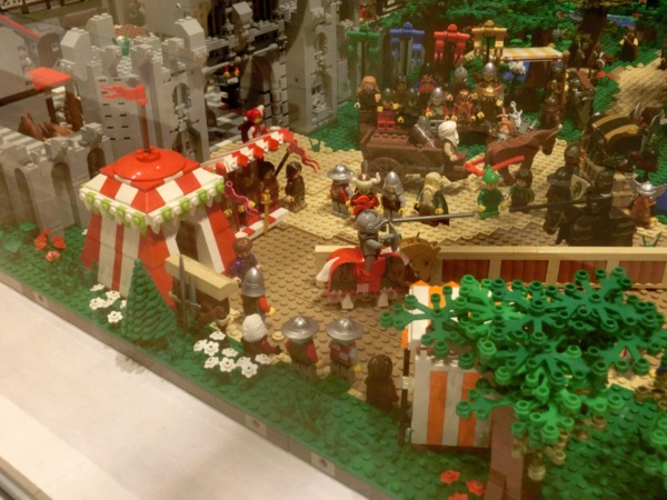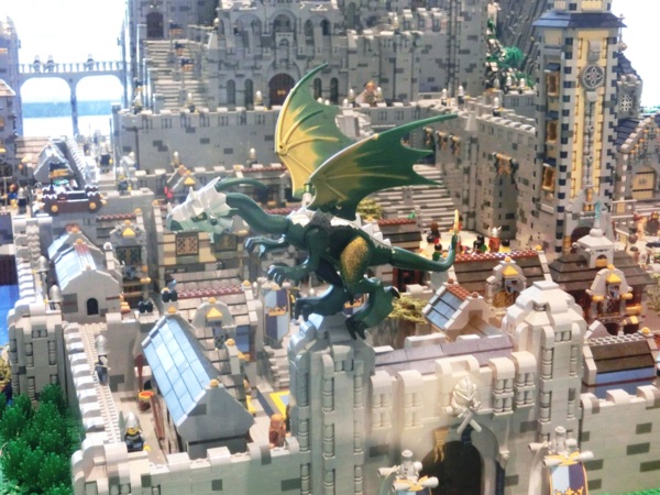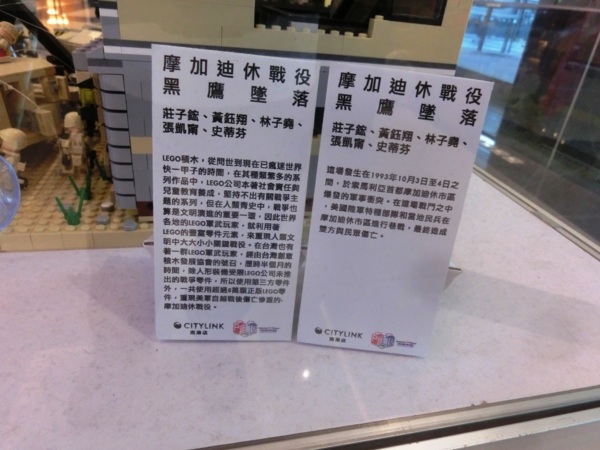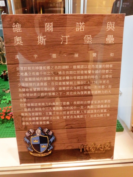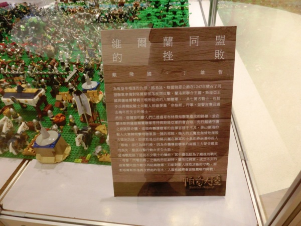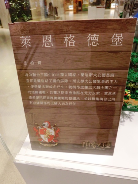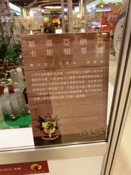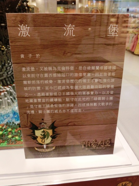 以幾米繪本為永久主題的南港車站,是我頗喜歡的車站,出站即可見到幾米大型繪本彩繪牆,上方則是百貨商場CITYLINK南港店。才剛結束幾米大型裝置特展,百貨商場即日起又推出了免費的樂高積木特展。總共30位作者用了250萬顆積木、打造了255件作品,創作出一座迷你微型世界。其中規模最大的是樂高的《帕奇大陸》,數個以中古世界為背景的幻想大陸,其中故事的設定類似當紅美劇《冰與火之歌》,有飛龍、獸人、騎士等中古奇幻元素。