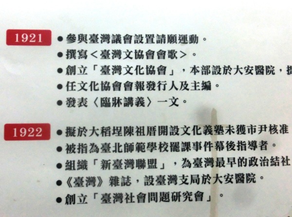 蔣渭水一生有4項工作影響台灣歷史:1)創立第一個全臺性的文化組織「臺灣文化協會」2)創立第一份臺灣人的報紙「《臺灣民報》」3)創立第一個現代意義的政黨「臺灣民眾黨」4)創立一個全臺性的工會組織「臺灣工友總聯盟」。其中,1921年10月17日成立的臺灣文化協會發軔最早,立會明列以「助長臺灣文化之發展為目的」。他一系列推展民眾文化提升之作為,包含發行文化會報、辦理文化義塾、舉辦文化講演團、設立文化書局、開辦各類知識講習會與夏季講習會等,不但成為1920年代臺灣啟蒙運動之濫觴,更是20世紀臺灣「本土文化」與「世界文明」接軌的先驅。