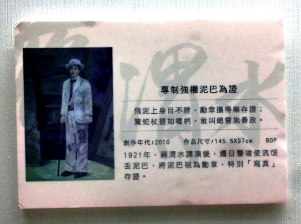 另外,「蔣渭水先生紀念展」展出包括:蔣渭水文化基金會委託知名畫家劉洋哲所創作之蔣渭水歷史留真油畫系列、蔣渭水主要社會運動系統圖、近年來社會各界紀念蔣渭水的新聞寫真等。本展覽重現蔣渭水民族正氣的英姿風采,帶領民眾跨越時空,一睹自覺年代蔣渭水推動文化與民族運動的經典史詩。