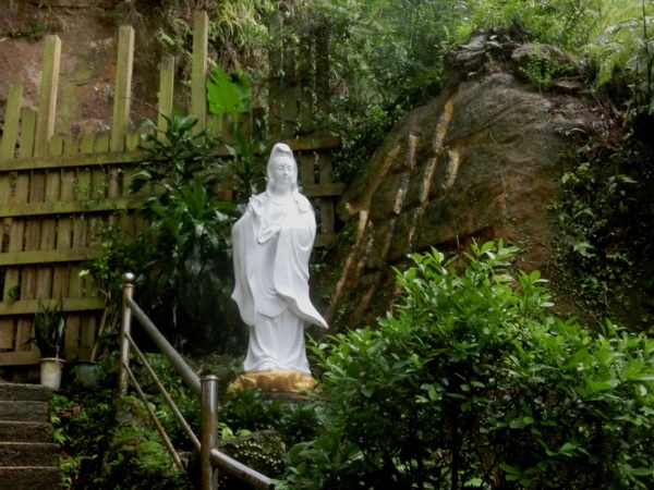 15:31 抵朝玄宮(主祀上帝公)就下起午後陣雨,拿起宮裏善書"弘一大師晚晴集"閒讀